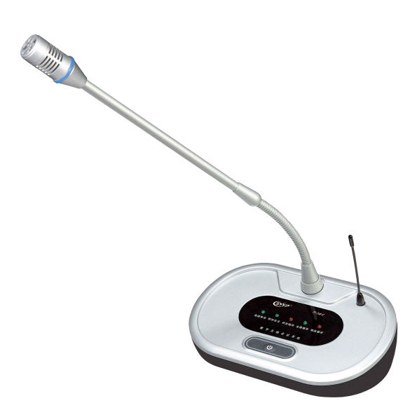 ◆ 討論型數(shù)字會議系統(tǒng)單元; ◆ 抗電磁、手機干擾功能; ◆ LED提示發(fā)言模式、工作狀態(tài)、低壓指示和主席控制按鍵等內(nèi)容信息; ◆ 主席單元具有優(yōu)先功能,不受限制功能的限制,可切斷代表發(fā)言; ◆ 鵝頸式咪桿設(shè)計,咪頭具有燈環(huán)指示開機狀態(tài); ◆ 外置發(fā)射天線,使信號全方位發(fā)射,在有效范圍內(nèi)不會出現(xiàn)失控狀態(tài); ◆ 使用3*AA 1.5V 電池,即安裝即使用,可連續(xù)使用8小時。 ◆ 電源供應(yīng):DC 4.5V,AA1.5V*3 ◆ 發(fā)射功率:10mW ◆ 拾音咪頭:電容式、單一指向 ◆ 話筒靈敏度:-43±3dB@1KHz ◆ 頻率響應(yīng):20-18KHz ◆ 持續(xù)使用時長:主席8小時