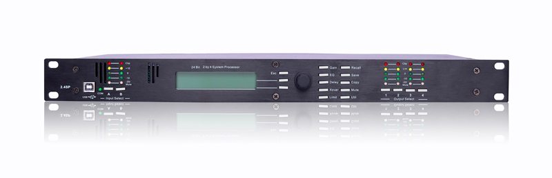 更快捷設置和強大的可視輸入/輸出路由,EQ,濾波曲線系統,1個USB接口和RS-232接口可用于控制軟件和PC連接。在音頻路由與控制處理方面非常的直觀。 2.4SP采用先進的高性能DSP處理器,輸入采用24 bit,48kHz的AKM A / D轉換器。數字處理包括:增益、極性轉換、參量均衡器、棚架濾波器、時間延時、分頻功能、壓縮、限制和信號路由,D / A轉換器使用24位delta-sigma轉換器。 每路輸入可控制增益、延遲和六個濾波器(您所選擇的每一個參數,高或低棚架) 。