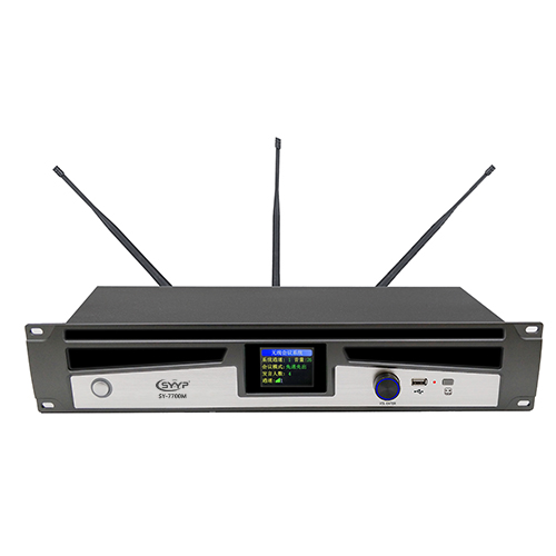 *主機面板采用堅固的鋁合金,精準數控加工立體面和表面陽極化抗氧化處理,拉絲銀鋁板與有機片的結合,外形美觀耐用,19英寸標準機柜2U設計大小; *主機最大可使用128支話筒,可匹配多支主席、代表話筒; *主機具備兩種發(fā)言模式:主席模式、先進先出模式,發(fā)言人數可調1-4人同時發(fā)言; *主機配備彩色顯示屏,可選擇中英文語言菜單顯示; *主機帶有視頻跟蹤功能 具備RS-485和RS-232接口控制攝像頭,可通過USB接口連接電腦軟件調試單元跟蹤; *UHF頻率自動跟蹤鎖定功能,具備20組系統通道可供選擇,選擇一次即可同時改變四通道使用頻率; *內置中度嘯叫抑制功能,可降低一定嘯叫程度; *主席話筒具備優(yōu)先功能,一鍵關閉所有開啟中的代表話筒; *主機具備實時監(jiān)測功能,主機斷電,會議單元自動關閉,方便、環(huán)保節(jié)能; *無線會議系統具備高強度防手機電磁波干擾設計,可以杜絕手機信號干擾噪音; *內置高保真音質MP3錄音,最大支持32G U盤,錄音清晰、儲存方便。