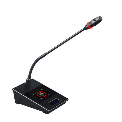 *話筒具備高強度防手機電磁波干擾設計,可以杜絕手機干擾噪音鄰頻干擾抑制; *主席話筒具備優先功能,一鍵關閉所有開啟中的代表話筒; *話筒具有IPS彩色顯示屏,特有廣視角、色彩艷麗,實時顯示話筒狀態:剩余電量、ID號、使用頻道以及發言時間計算; *內置大容量充電式鋰電池,一次充電可待機13小時,連續使用時間達8小時,話筒使用不分正反面TYPE-C接口充電,標配5V充電器(選配20孔充電機); *話筒表面使用啞光黑鋁合金面板,搭配黑色有機玻璃,銀白色倒邊,靚麗優雅,堅固耐用; *隱藏式簡潔話筒開關,防塵易清理,話筒打開后圖標亮起,具有持久耐用,按鍵清晰; *配備專業高保真、單一高指向性電容咪芯,可插拔式咪桿,聲音洪亮清脆,增加高速反饋抑制器可增加拾音距離至50M-80CM;