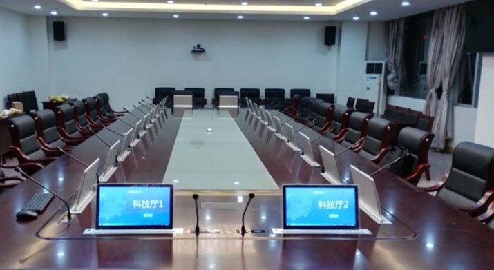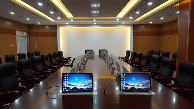 產品本身內置LED顯示屏,超薄機身和鋁合金精拉絲氧化面板結構,齒合式直線導軌傳動方式,機械防夾手設計,一體化機身防護,外觀無螺絲,產品使用安全可靠,美觀大方。外置VGA、DVI、HDMI等多重信號接口和RS232/485控制接口,產品在啟動時,液晶顯示屏升降器從箱體內部升出桌面并自動為顯示屏供電,產品設有智能仰角0-15°可調節角度功能,滿足各個人群的顯示屏仰角使用需要。當產品使用完成需要關閉時,顯示屏自動返回升降隱藏于箱體內部并自動斷開顯示屏電源,起到保護顯示屏并節約用電的作用。產品具有防盜、防塵、和保持桌面平整清潔,會議場所整齊有序等功能。本系列產品可按客戶要求定制。